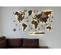 Wooden 3D world map of Kilimanjaro, M-200*125 cm (with backlight), English, Mordor